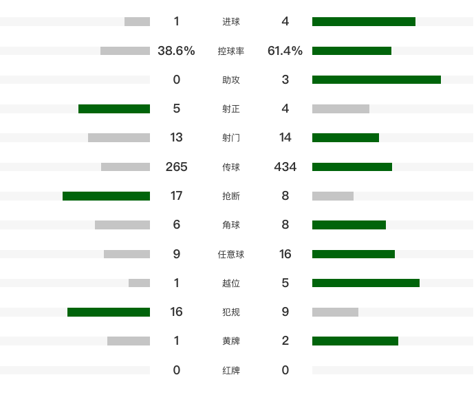 第41分钟,怀特右路低平球斜传,马丁内利后点绝佳机会推射击中立柱。